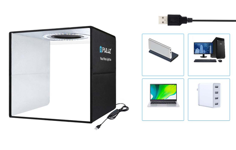Do you often take pictures with your smartphone? Or do you use a camera? The PuluzВ photo studio will work in almost every situation! You can also take photos from different perspectives - from the front or from above, through the additional opening. The kit also includes a special soft cloth to help you take pictures of highly reflective objects. Inside the tent there is a reflective fabric to ensure even dispersion of light.